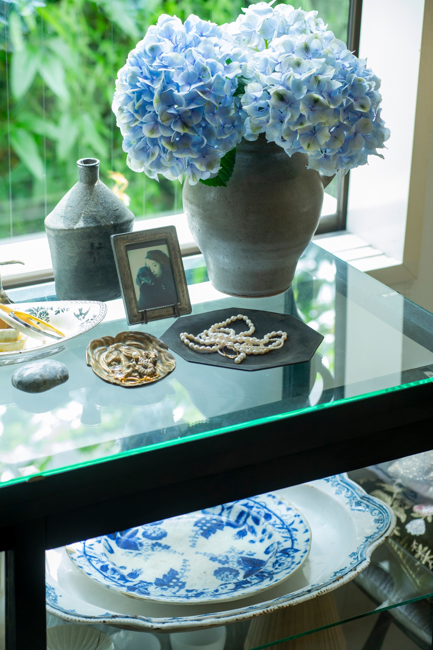 ここには、フランスで見つけたアンティークのお皿や割れてしまったけど修復した大切な大皿、ふだんは使わないけれど特別な日に選びたくなるカップ&ソーサー、そしてアクセサリーなどが静かに収められています。